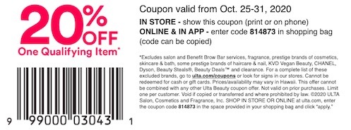 Ulta Coupons In Store October 2019 - airmax2016.info Ulta Coupons In Store October 2019, Android Tablet Deals Of The Day Uk, Printable Money Off Coupons Uk 2020, Live Clean Coupon 2019, Cheap Airline Ticket Coupons, Memory Mixer Coupon Codes 2019, Modern Bike Deals ... ULTA 20% Off Coupon Out! Valid 10/29 Only! ULTA 20% Off Coupon Out! Valid 10/29 Only! Beauty Sales & Deals Contains: Affiliate Links Christine | October 29, 2016 ULTA just sent out a 20% off coupon via email that applies to most prestige brands (see excluded brands below!) for online use, valid October 29th, 2016 only. If you didn't get an email, you can try calling customer service.